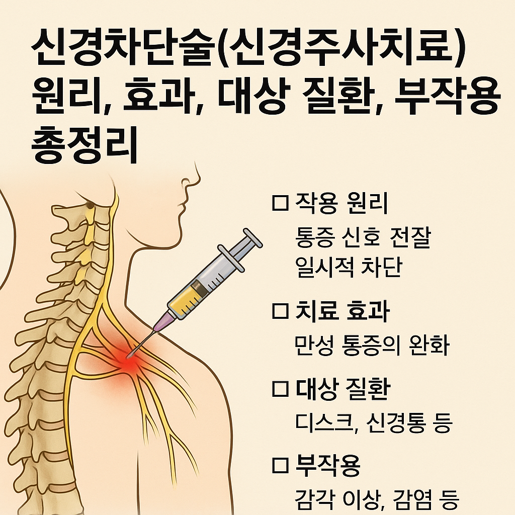 현대인의 만성 통증은 삶의 질을 크게 떨어뜨립니다. 특히 허리통증, 목디스크, 대상포진 후 신경통처럼 신경이 원인이 되는 통증은 일반적인 진통제나 물리치료만으로는 해결이 어렵습니다. 이런 경우에 효과적으로 활용되는 치료법이 바로 신경차단술 또는 신경주사치료입니다. 이 글에서는 신경차단술의 작용 원리부터 치료 효과, 대상 질환, 부작용까지 구체적으로 살펴봅니다.